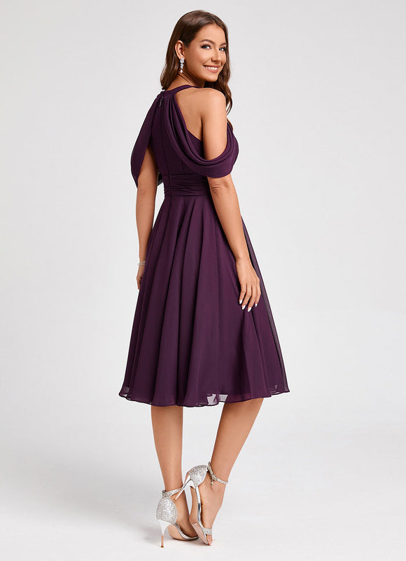 Cette Robe Midi Violet Fluide est confectionnée en mousseline de qualité supérieure, un tissu reconnu pour sa légèreté et sa fluidité, créant un tombé parfait et un mouvement aérien à chacun de vos pas. Son design raffiné inclut un col rond intemporel et des détails drapés et à volants au niveau des épaules, ajoutant une touche de sophistication moderne. La coupe trapèze assure une silhouette harmonieuse, tandis que le soutien-gorge intégré vous offre un maintien optimal sans compromettre votre confort. Facile à enfiler grâce à sa fermeture éclair discrète au dos, cette robe est prête à vous accompagner dans tous vos moments précieux, vous garantissant une allure impeccable et un bien-être absolu.